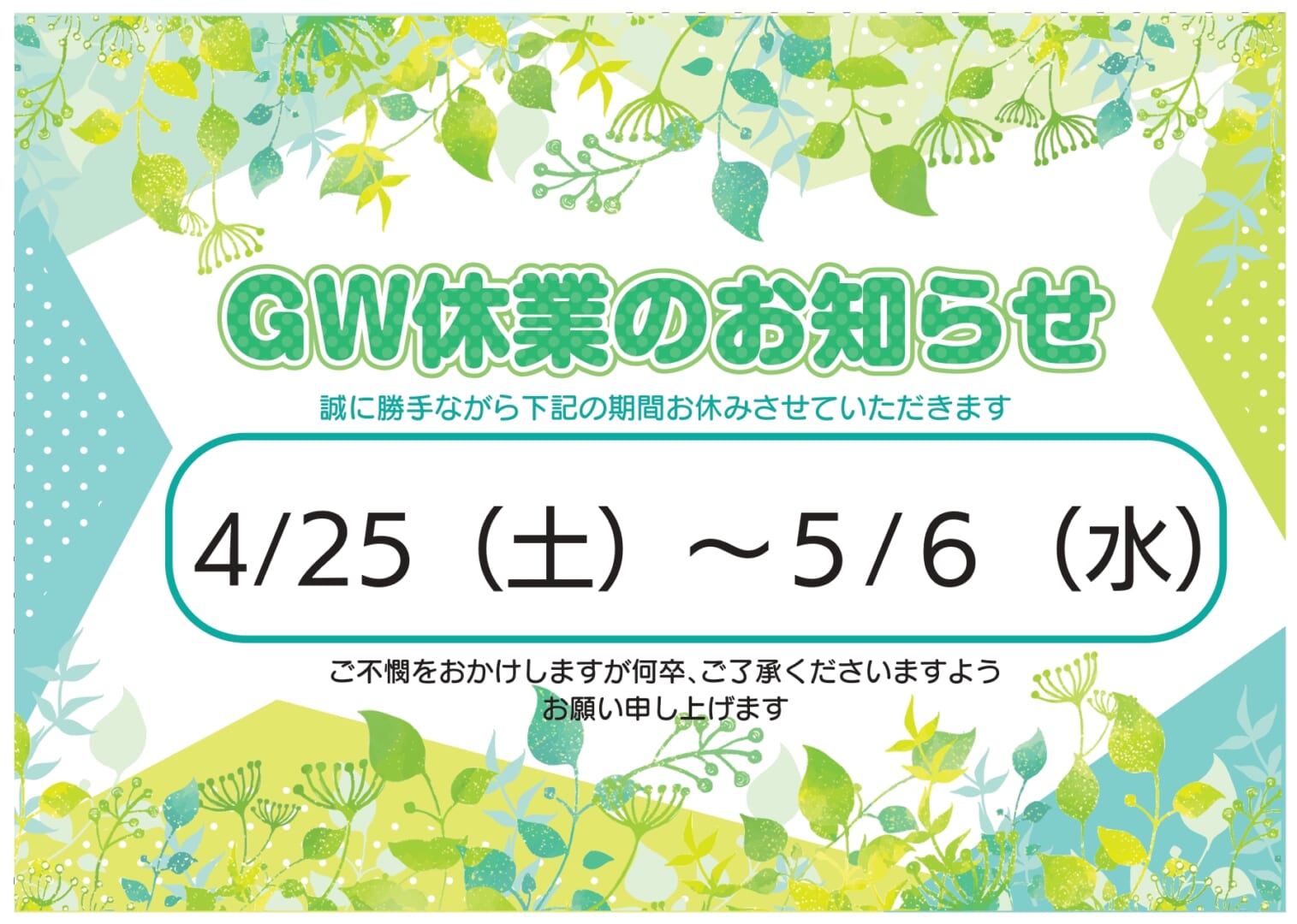 ☆GW休業日のお知らせ☆