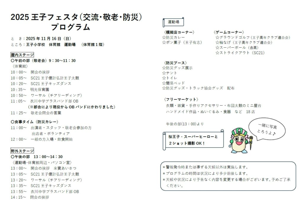 2025年度王子フェスタのプログラム、当日の配置図を掲載しています!