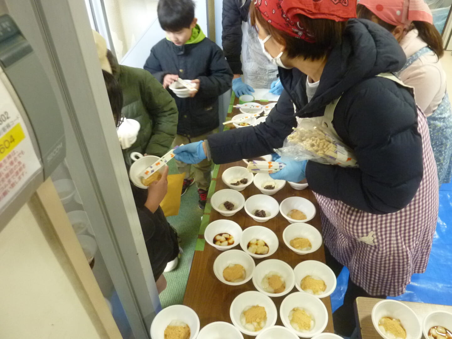 3)内容:餅つき体験、ぜんざい・きな粉・砂糖醤油餅の振る舞い