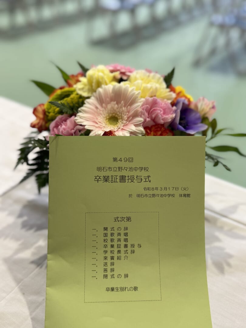 令和8年3月17日(火)、野々池中学校において卒業式が行われました。