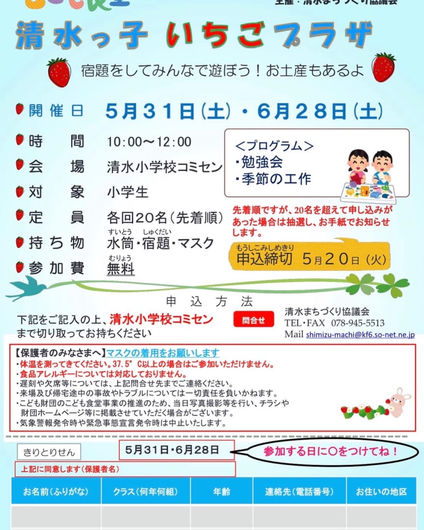 今年度の子ども食堂「清水っ子いちごプラザ」がスタートします(^^)/