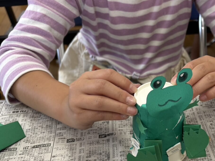 今日は勉強会と工作はぴょんぴょんカエルを作りました♪