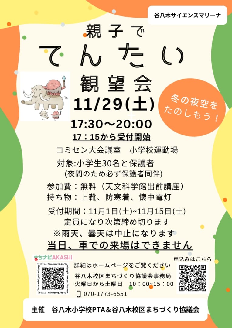 • 定員: 谷八木小児童30名とその保護者(先着順)  ※夜間のため必ず保護者同伴でお願いします!!