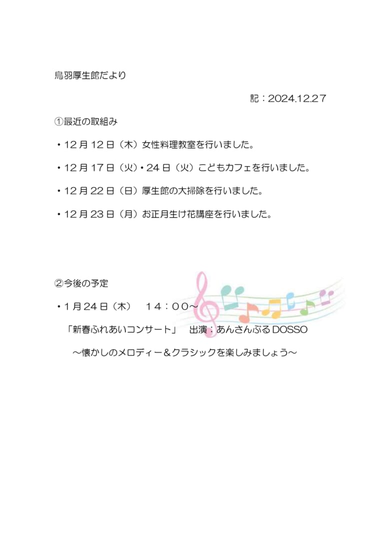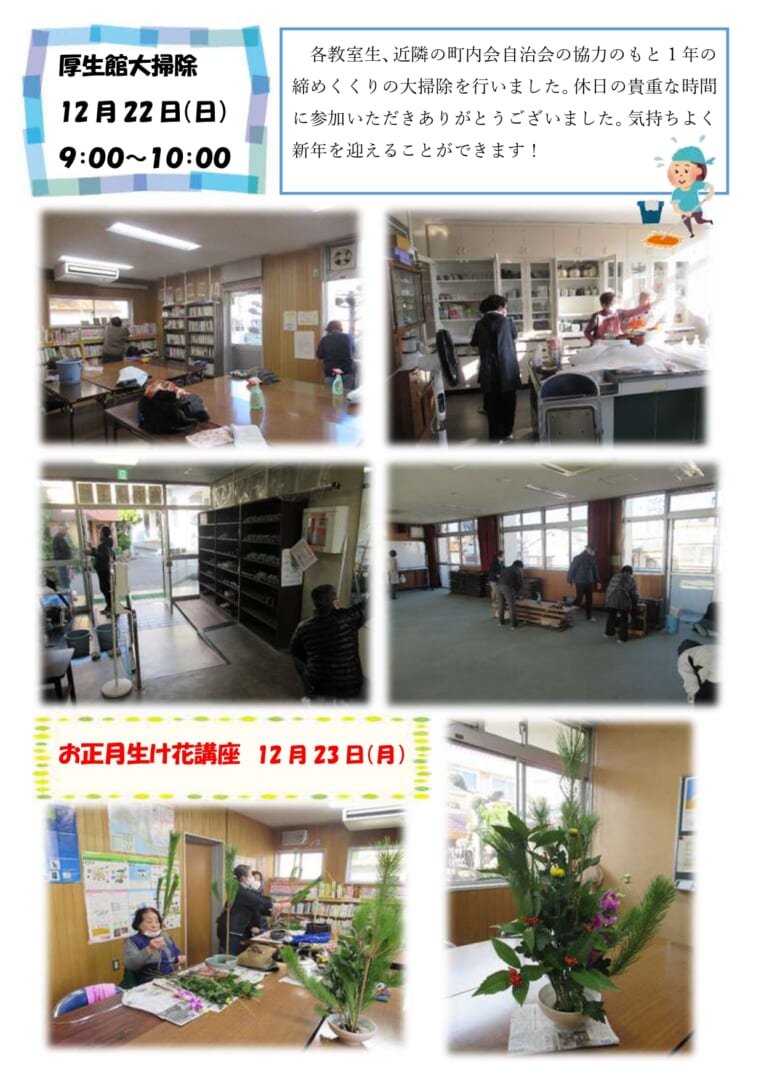 厚生館便り(料理教室・こどもカフェ・大掃除)