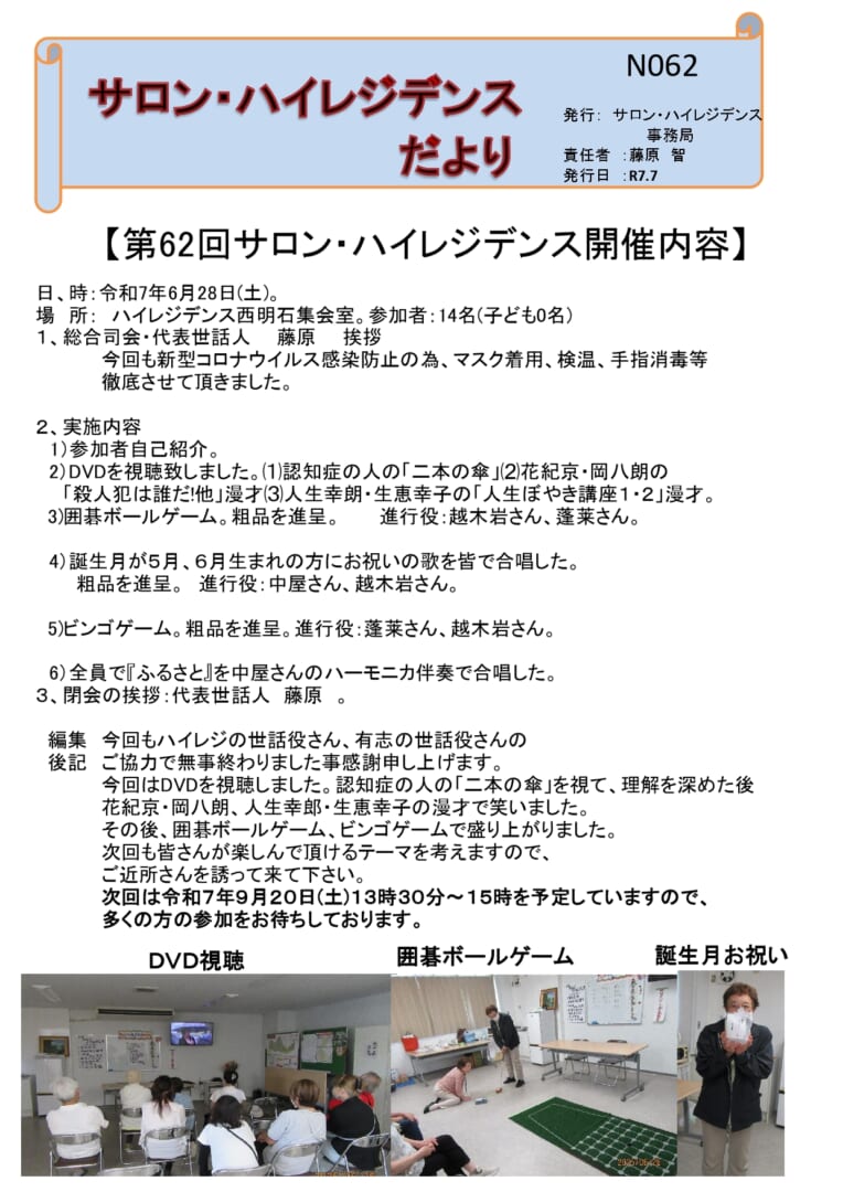 サロン・ハイレジデンスだよりNo.62を発行