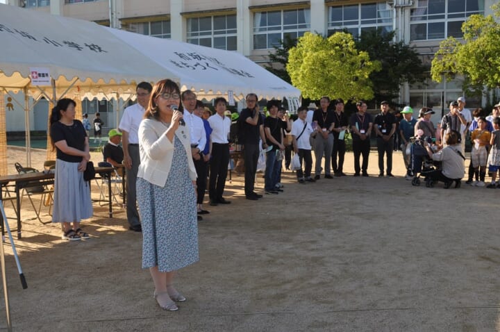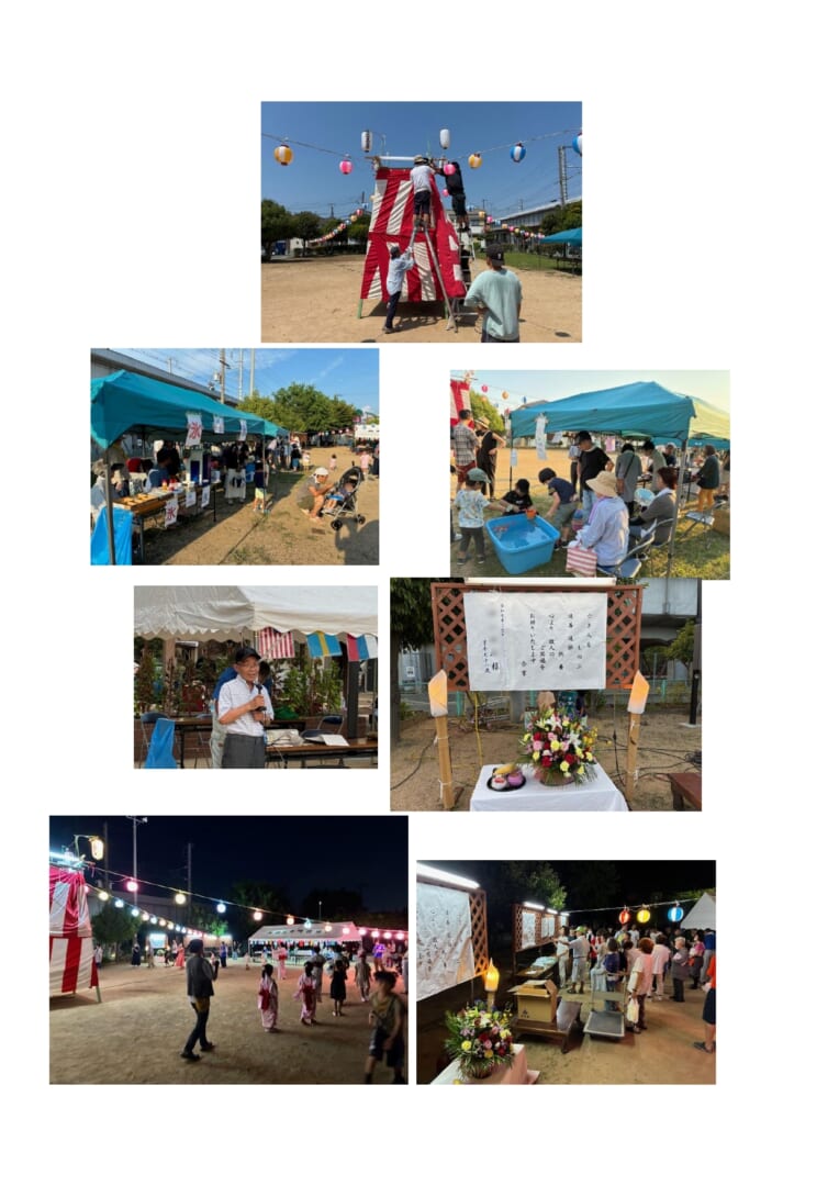 西明石東町自治会で盆踊り&抽選会を開催(8月16日) 投稿日 2025年8月17日 著者 wasaka カテゴリー 和坂 西明石東町自治会では、8月16日(土)に地域内の鳥羽大東公園で盆踊り&抽選会を開催しました。 当日朝、やぐらの組み立てなどの会場設営は、住民皆さんが協力しあいながら行いました。 盆踊りに先立っての行われた出店では、手作り感満載のヨーヨー釣りやスーパーバレーすくいなどがあり、子どもたちは楽しんでいました。盆踊りの部では、澤村副会長の挨拶の後、物故者への黙とうを捧げ、盆踊りを行いました。 盆踊りを終えた後のお楽しみ抽選会では、大いに盛り上がりました(^^)/
