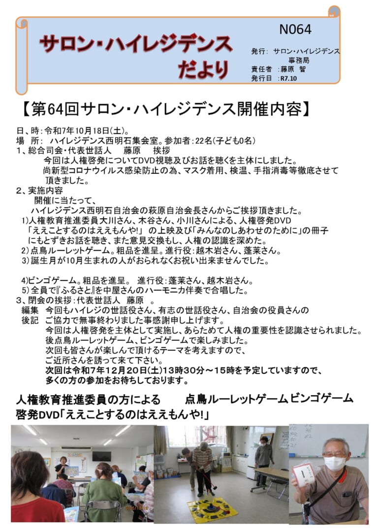 サロン・ハイレジデンスだよりNo.64を発行